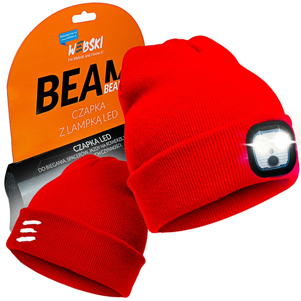 Czapka jesienno-zimowa z latarką czołową LED Webski Beanie – czerwona