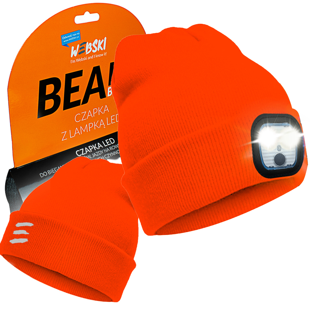 Czapka jesienno-zimowa z latarką czołową LED Webski Beanie – pomarańczowa neon