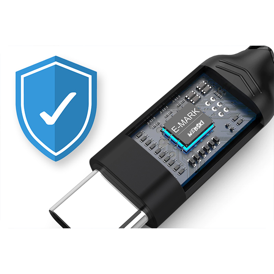 Chip E-Mark monitoruje i dostosowuje napięcia płynące przez przewód i normuje je, aby Twoje urządzenie zawsze otrzymywało odpowiednie zasilanie, bez skoków i spadków napięcia, które są niebezpieczne dla baterii i innych układów. Jednocześnie wydłużając żywotność tych podzespołów.