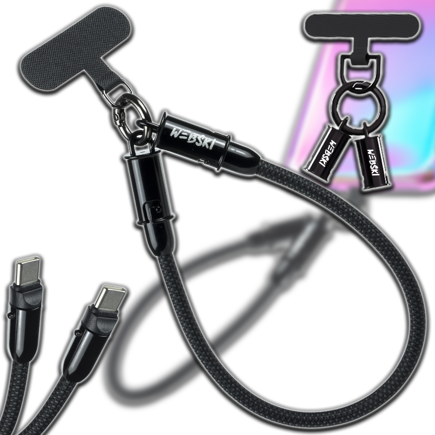 Ultraszybki kabel ładujący USB-C Webski® 60W w formie smyczki o długości 30 cm