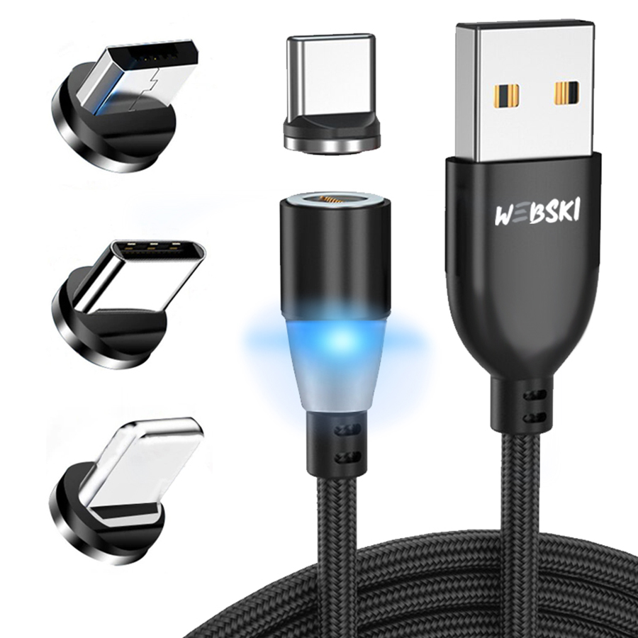 Webski MAGNETYCZNY KABEL USB, OBROTOWY 360° W OPLOCIE NYLONOWYM