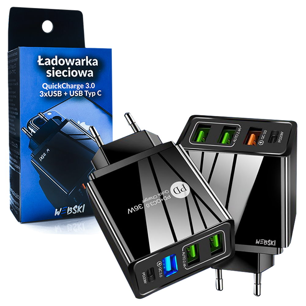 WEBSKA SZYBKA ŁADOWARKA SIECIOWA 4XUSB QuickCharge 3.0 + USB Typ C