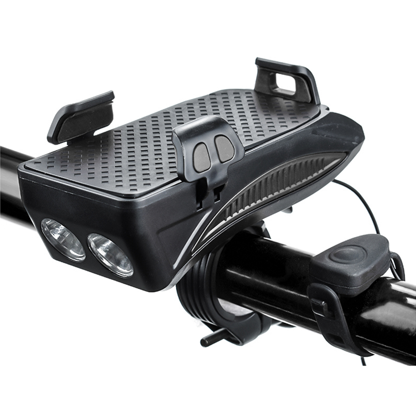 WODOODPORNA LAMPKA ROWEROWA Z WBUDOWANYM UCHWYTEM DO TELEFONU, 5-TONOWYM KLAKSONEM I POWERBANKIEM!