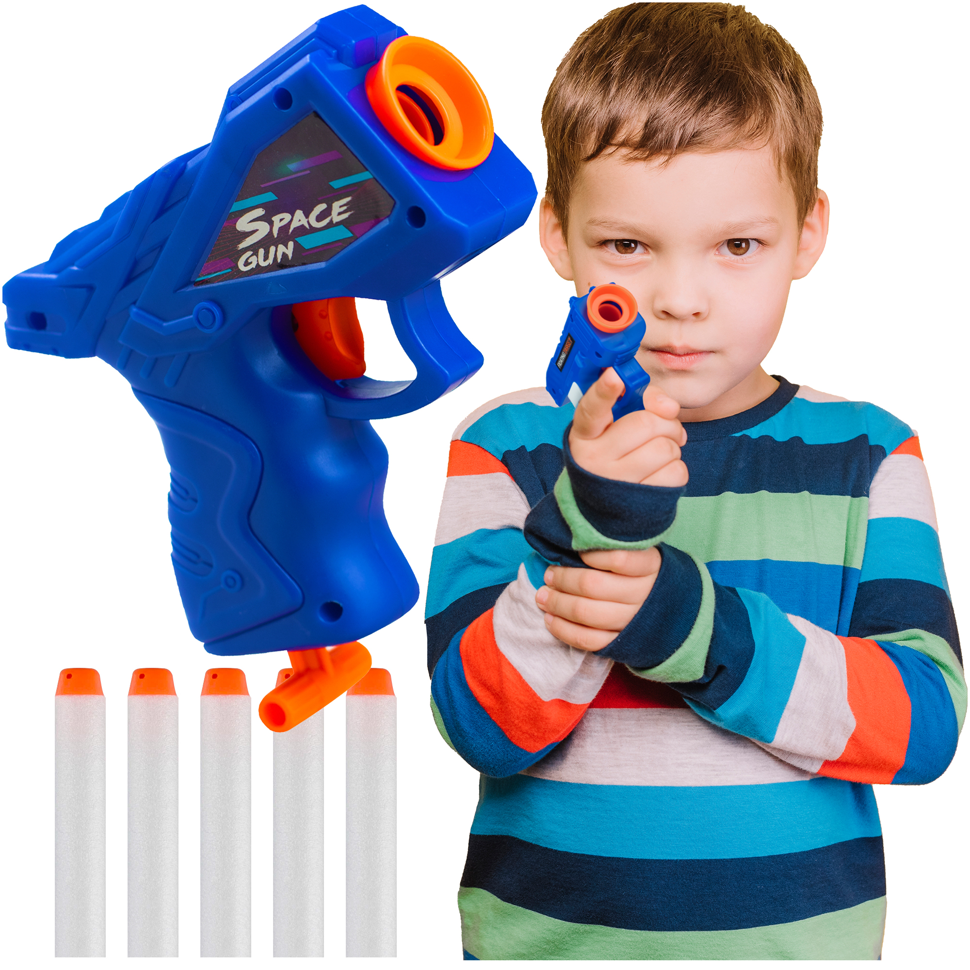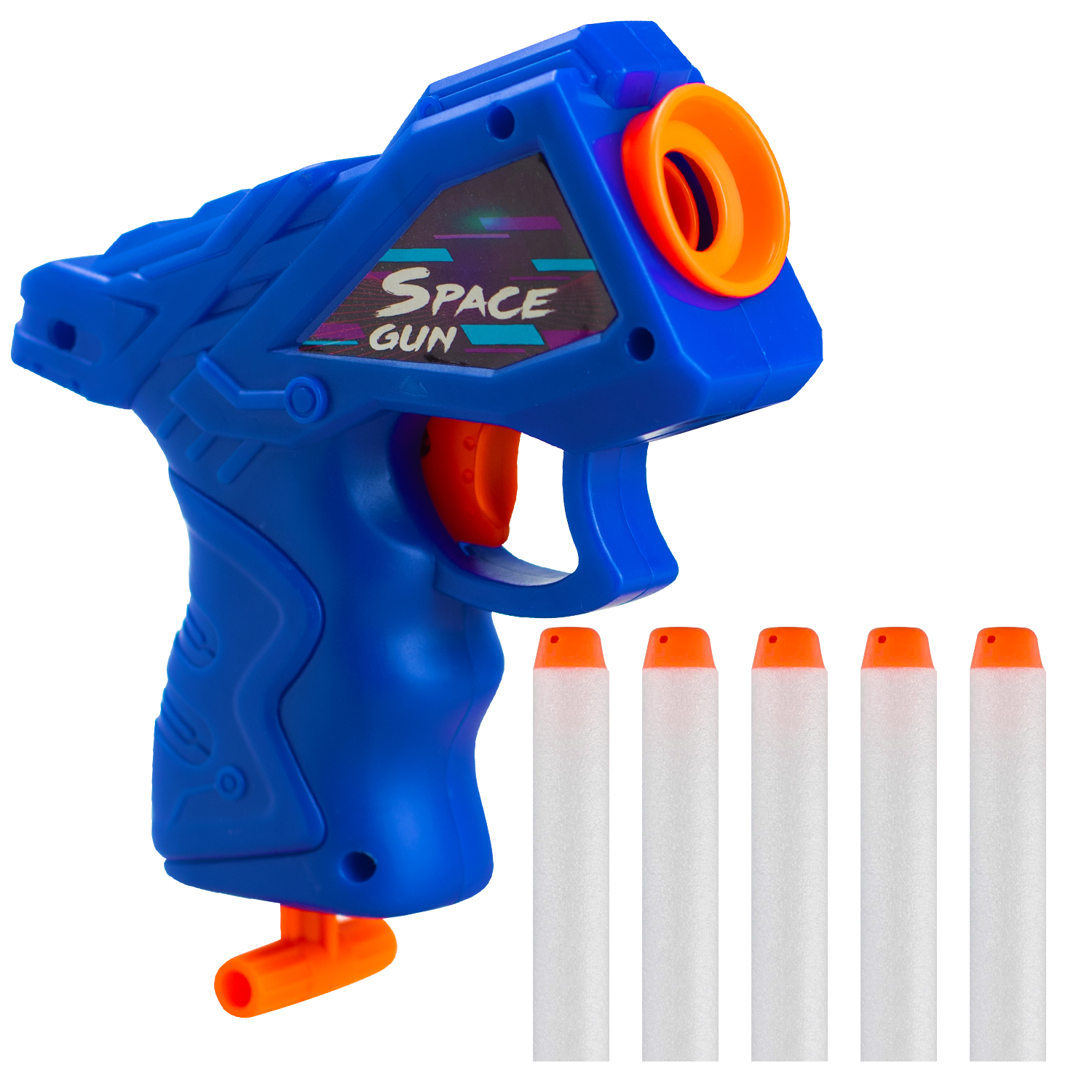 Bezpieczny pistolet na pianki to idealna zabawka dla dzieci w każdym wieku. Ćwicz swoją celność strzelając do różnych celów, nie martwiąc się, że możesz coś uszkodzić. Bezpieczne pociski z pianki oraz gumowych nakładek stabilizujących - osiągają odległość lotu nawet 10 metrów! Niezależnie gdzie jesteś czy w mieszkaniu czy na świeżym powietrzu, SpaceGun to świetnie rozwiązanie na spędzanie aktywnie wolnego czasu!