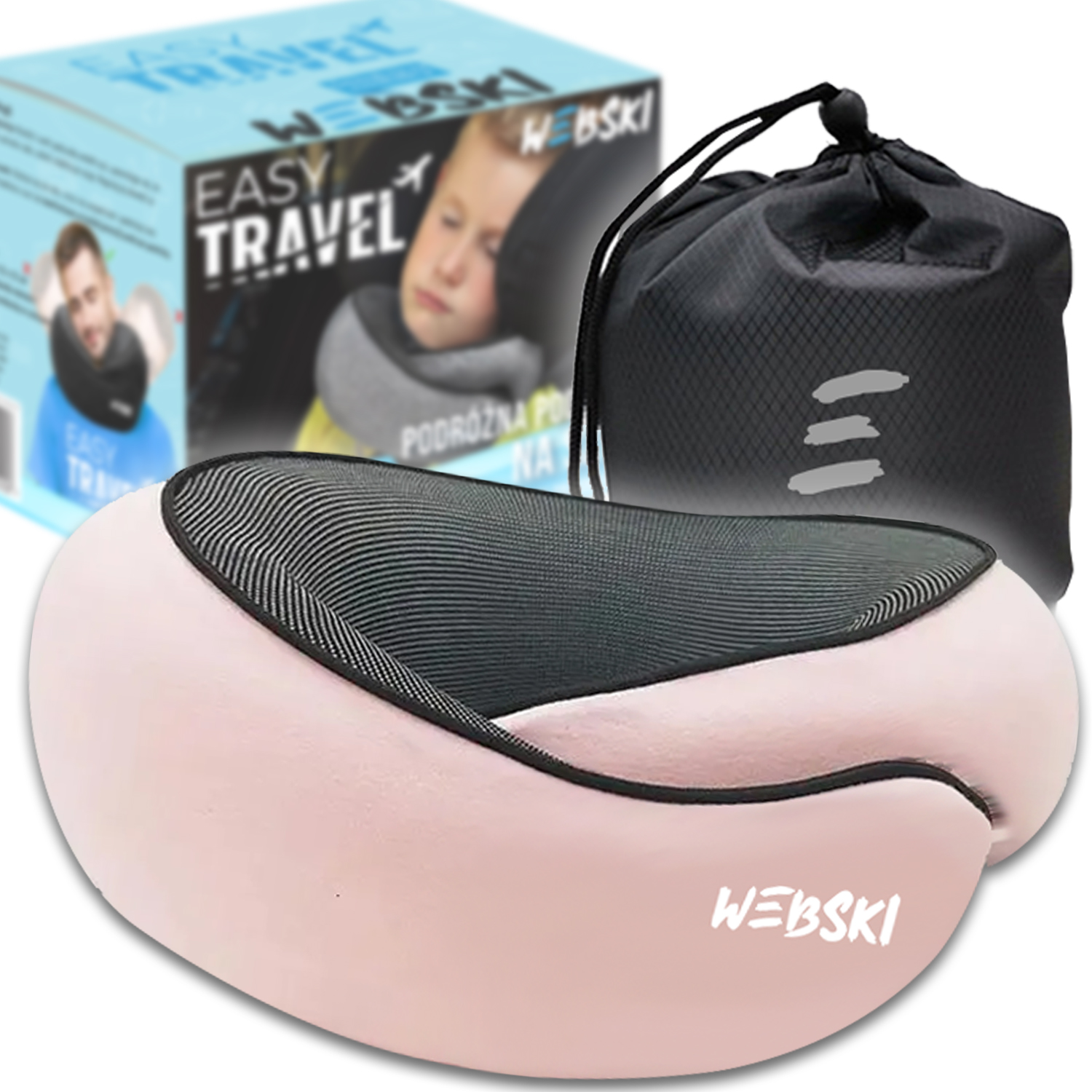 Podróżna poduszka stabilizująca z pianką pamięciową memory – Webski® Easy Travel