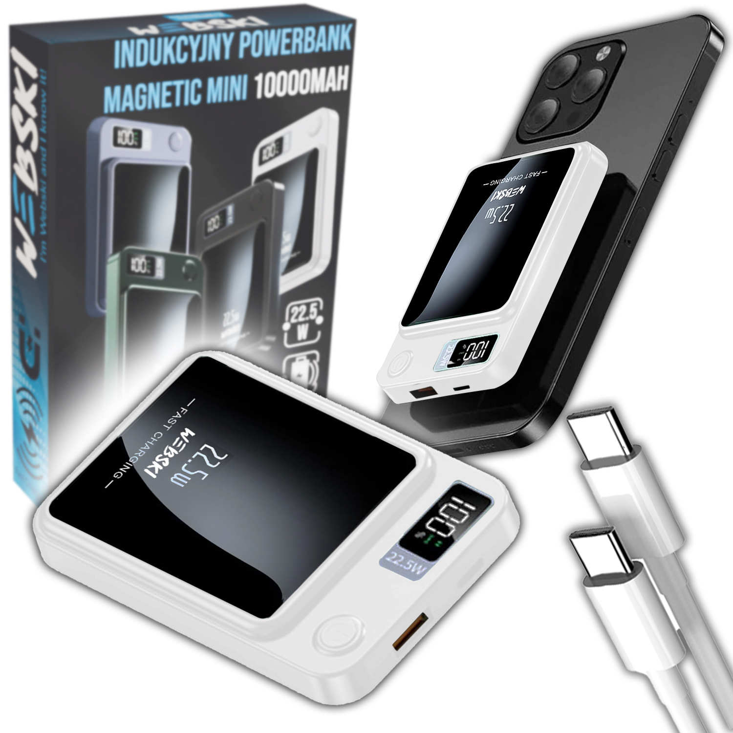 bezprzewodowy powerbank do iPhone, powerbank 10000 mAh, powerbank MagSafe do iPhone, magnetyczny powerbank Webski, powerbank z szybkim ładowaniem, indukcyjny powerbank USB-C, powerbank lightning, powerbank na wyświetlaczu LED, przenośna ładowarka z MagSafe, powerbank do podróży, powerbank do słuchawek, powerbank do telefonu, ładowarka przenośna do iPhone, mocny powerbank z dwoma portami, powerbank z dwoma portami USB