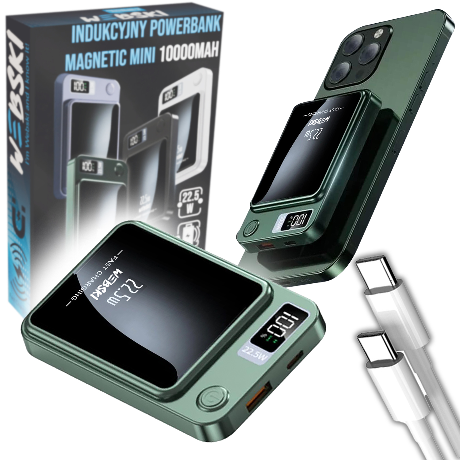 bezprzewodowy powerbank do iPhone, powerbank 10000 mAh, powerbank MagSafe do iPhone, magnetyczny powerbank Webski, powerbank z szybkim ładowaniem, indukcyjny powerbank USB-C, powerbank lightning, powerbank na wyświetlaczu LED, przenośna ładowarka z MagSafe, powerbank do podróży, powerbank do słuchawek, powerbank do telefonu, ładowarka przenośna do iPhone, mocny powerbank z dwoma portami, powerbank z dwoma portami USB
