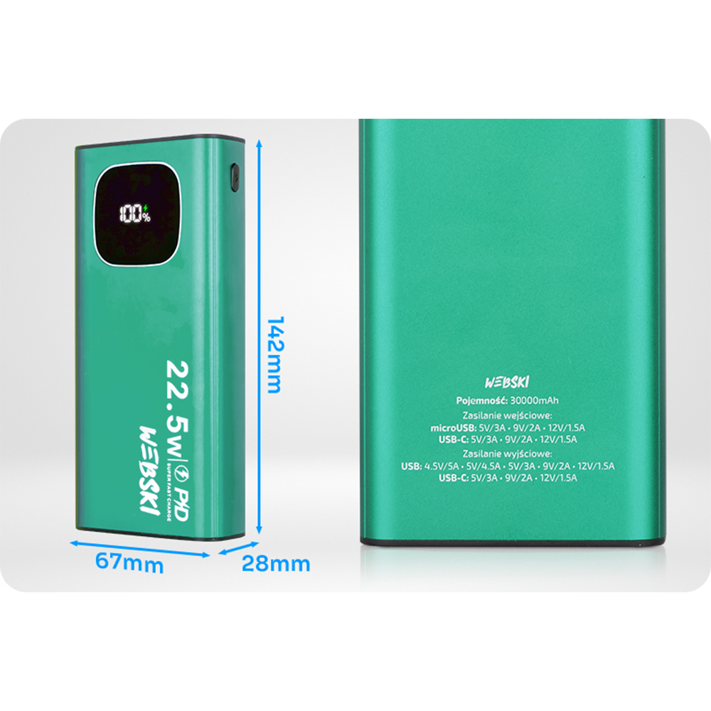 Powerbank Webski 30000 mAh z szybkim ładowaniem
