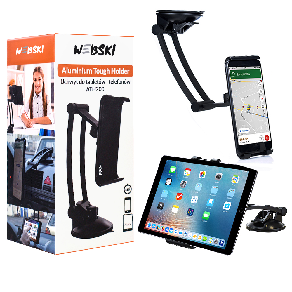 Uchwyt pasuje do telefonów od 4,5 cali, tabletów od 7 cali aż do 11cali oraz nawigacji.