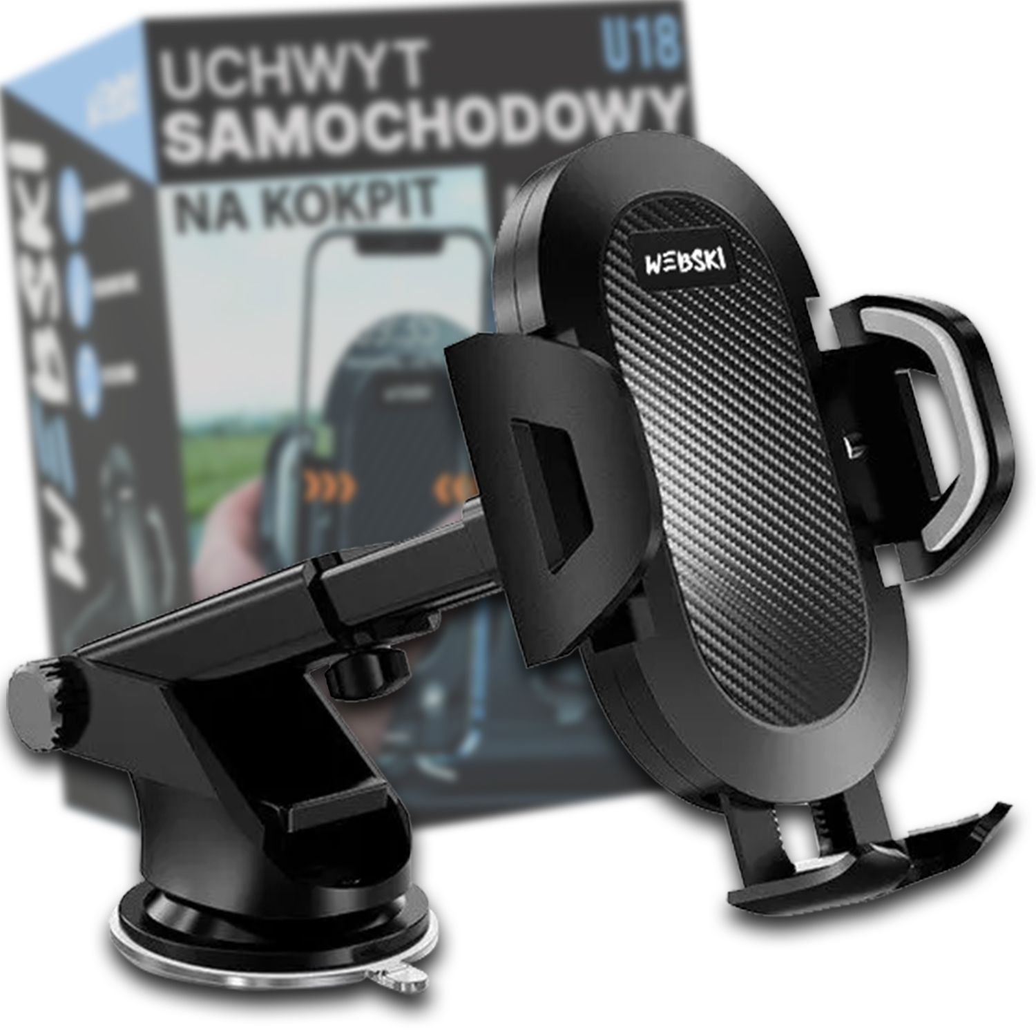 uchwyt samochodowy, uchwyt do telefonu, uchwyt na szybę, uchwyt na kokpit, uchwyt do smartfona, uchwyt z przyssawką, uchwyt obrotowy, uchwyt Webski, uchwyt na deskę rozdzielczą, uchwyt stabilny, uchwyt z regulacją, uchwyt do ładowania, uchwyt do każdego telefonu