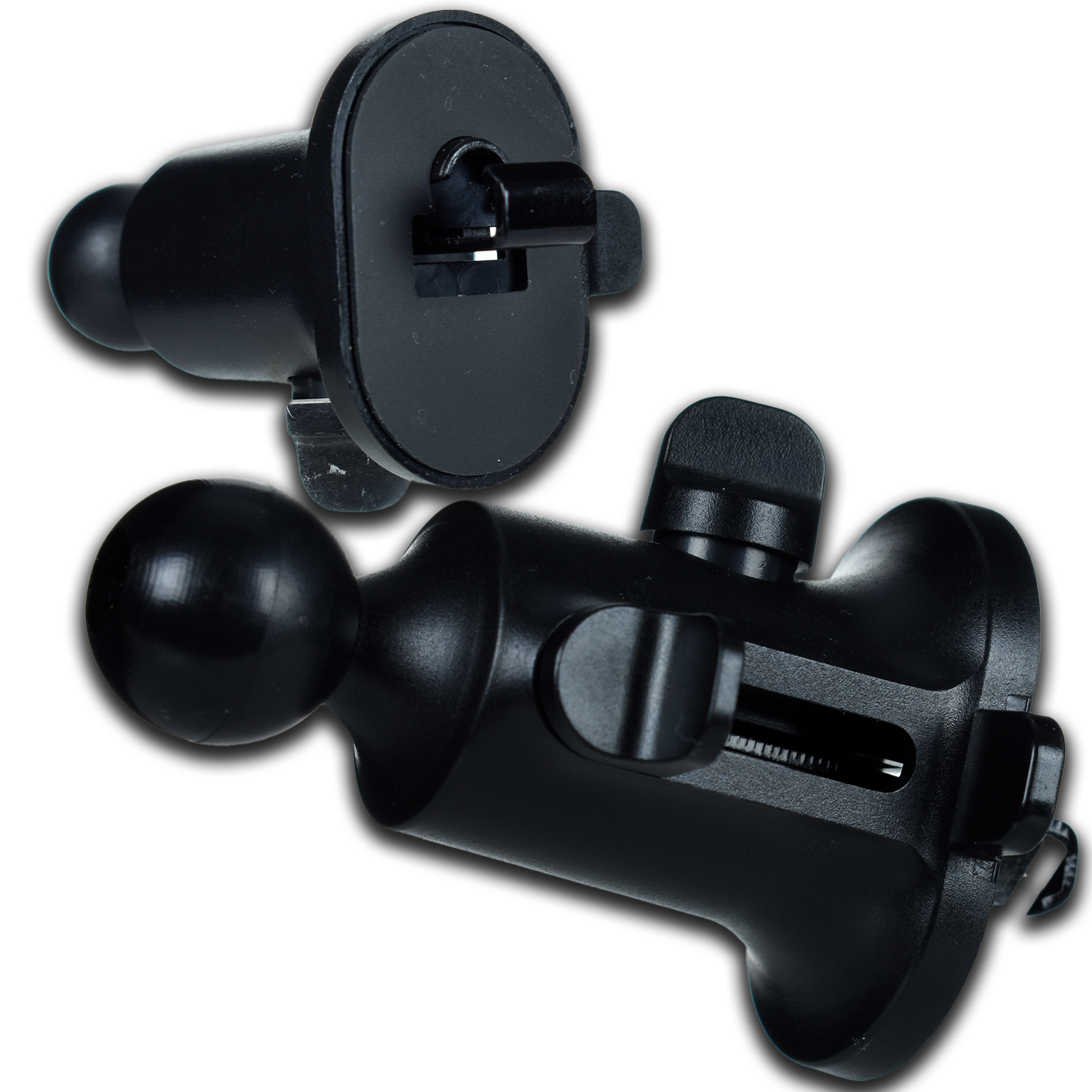 Głowica pasująca do większości uchwytów samochodowych dostępnych na rynku sprawi, że niemal każdy uchwyt przeznaczony do montażu na kokpicie, szybie czy lusterku zamontujesz również w kratce nawiewu!